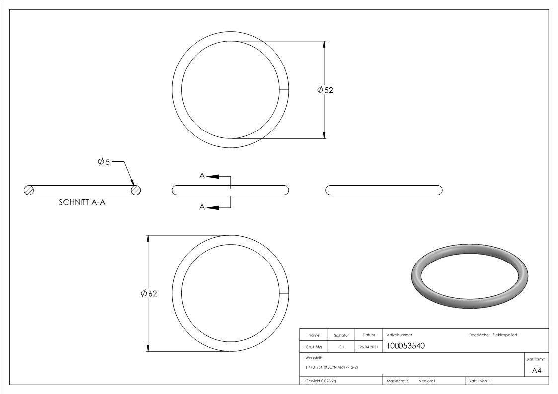 Anneau 5x62mm V4A