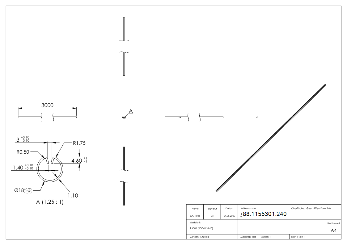 | Werkstoff: | V2A (AISI304) 1.4301 |